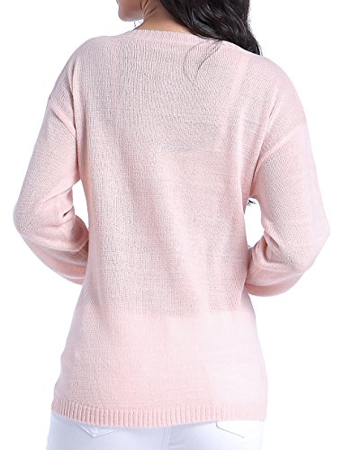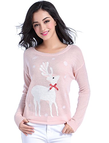 v28 Ugly Christmas Sweater, Women Girls Cute Shining Reindeer Pullover Sweater (L, Pink)