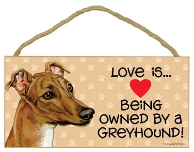Love is being owned by a Greyhound (Brown color) 5" x 10" MDF Wood Sign (SJT60541)