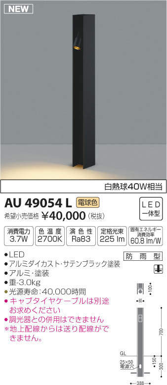 ●地上高-700 幅-60 出幅-100 埋込深-300mm 重-3.0kg