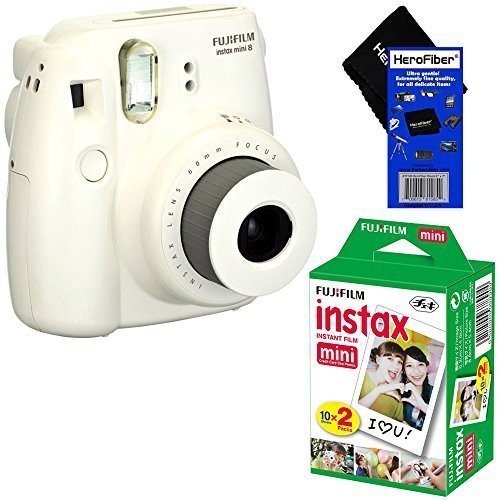 This kit includes 3 items; Fujifilm Instax Mini 8 Instant Film Camera (White), Fujifilm Instant Color Film (20 sheets) & HeroFiber® Ultra Gentle Cleaning Cloth