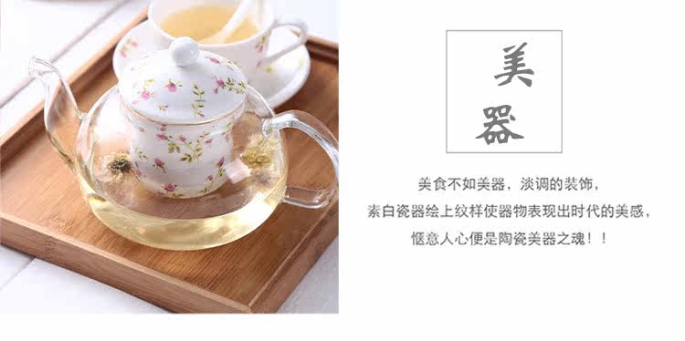 ?下午花茶具套装陶瓷 美式田园小清新咖啡杯碟具 耐热玻璃水壶带杯