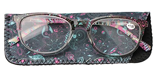 (SOOLALA)/Accessories/Eyewear/DIRECT FROM USA/SOOLALA Designer Spring Hinge Wayfarer Wide Lens Reading Glass w/ Pouch