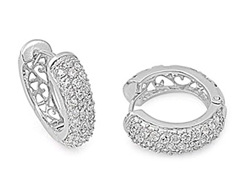 -. Title : Micro Pave Hie Hoop Earrings Clear Simulated CZ .925 Sterling Silver