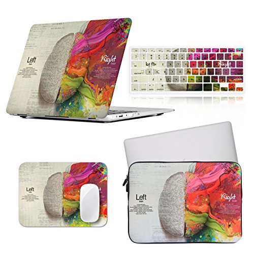 Macbook Air13 Inch case,iCasso 4 in1 Rubber Coated Hard Shell Protective Air13 Inch Model A1369/A1466 Case With Soft Sleeve Bag And Silicone Keyboard Cover And with Mouse Pad -Left and Right Brain