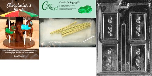 Cybrtrayd I Love You Business Card Chocolate Candy Mold with Chocolatier's Bundle, Includes 25 Cello Bags and 25 Gold Twist Ties