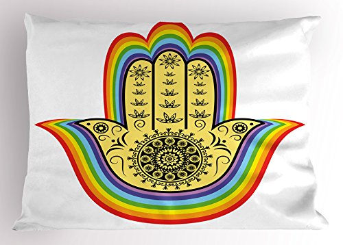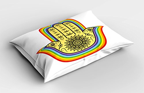 (Ambesonne)/Bedding Bath/Bedding/DIRECT FROM USA/Hamsa Pillow Sham by Ambesonne, Good Luck Charm with Delicate Lotus Inspired Flower Details and...