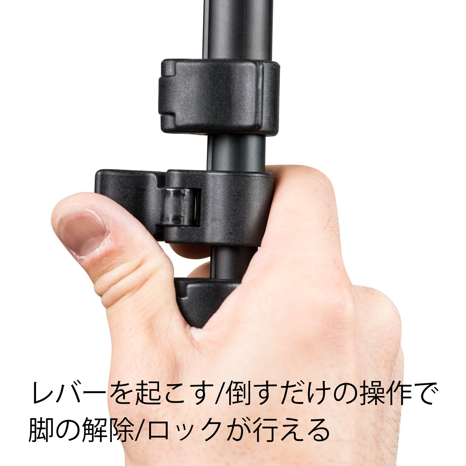 The lightweight body of 580 g and the total height of 1,150 mm are optimum size feel as a tripod as a second unit and a tripod for a compact camera.