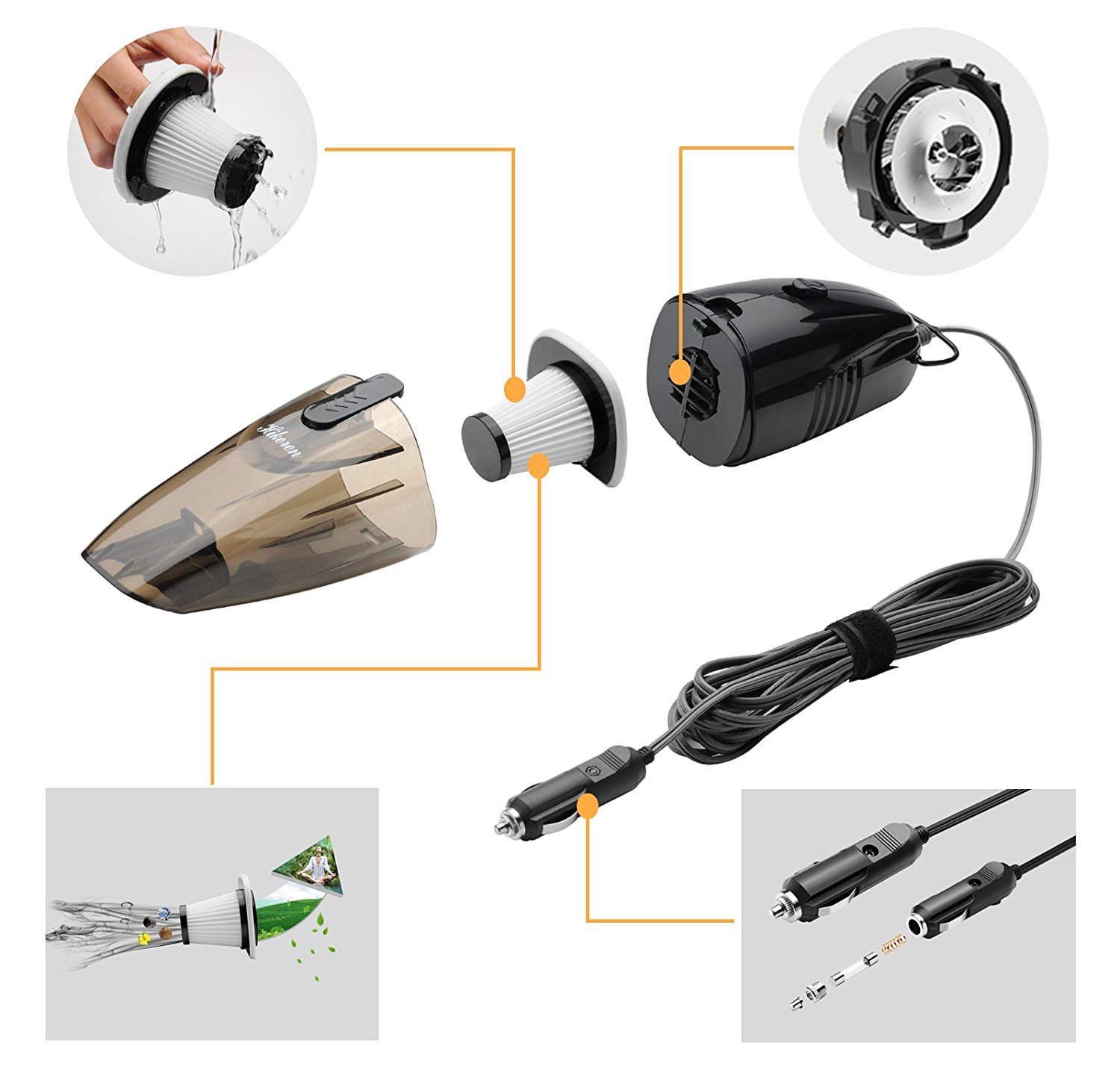 6. The dust cup can be removed and the dust remover is easy to clean, the filter can be washed with water, easy to clean!