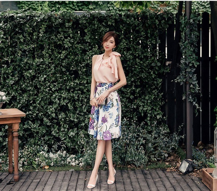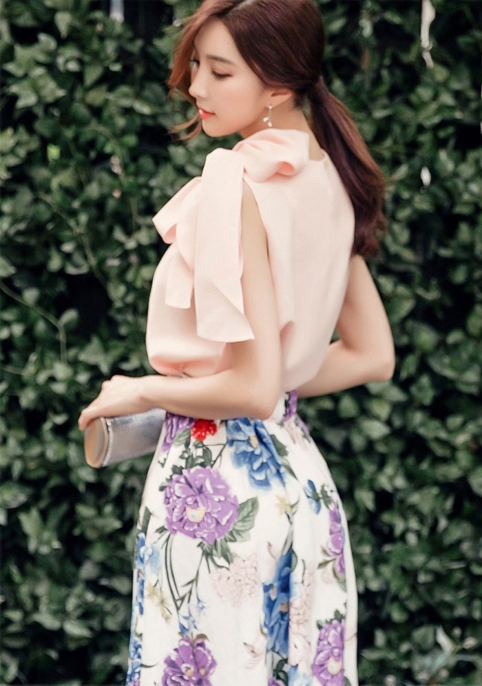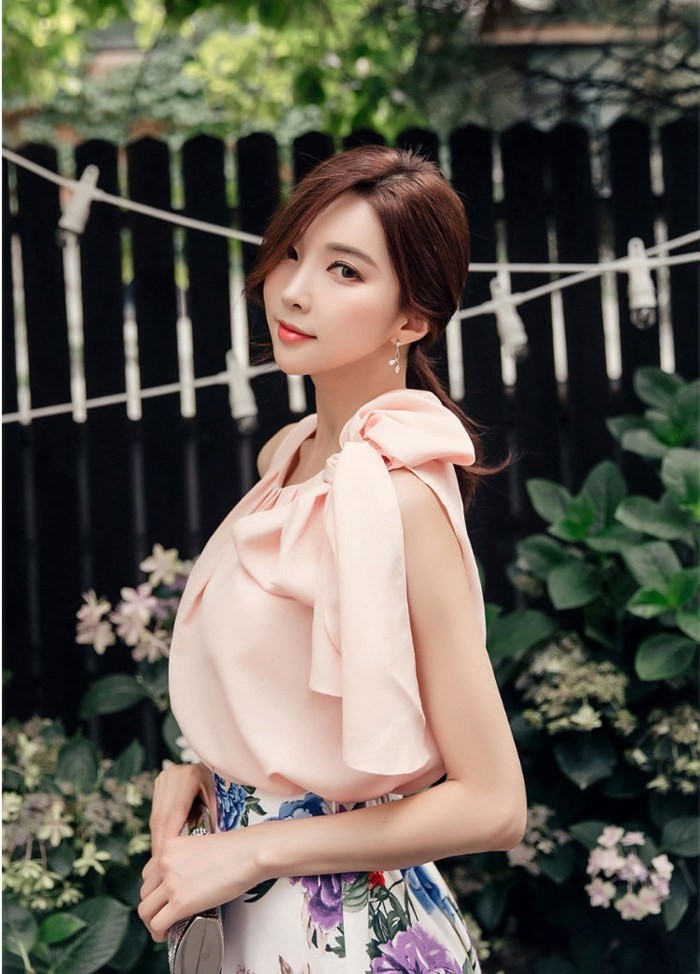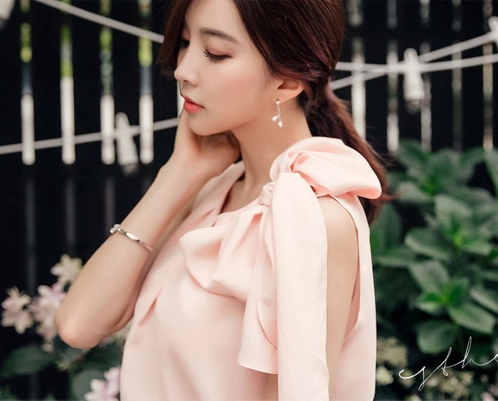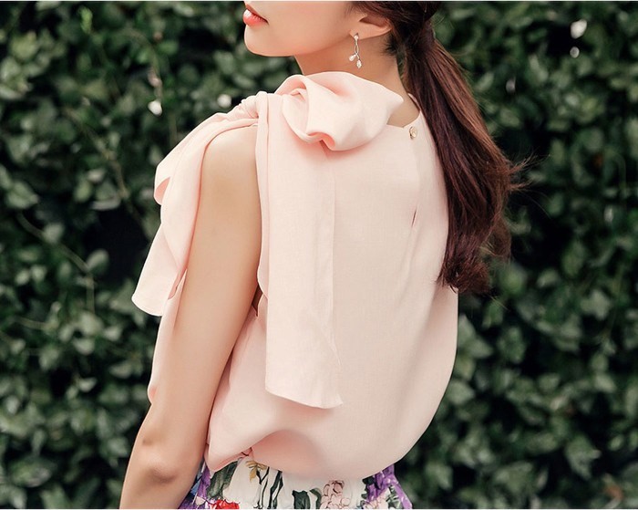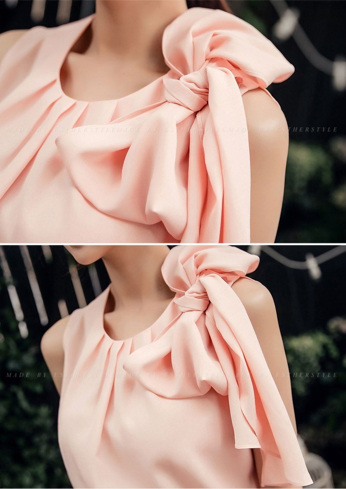 商品名:ブラウス ノースリーブ 無地 リボンブラウス きれいめ
