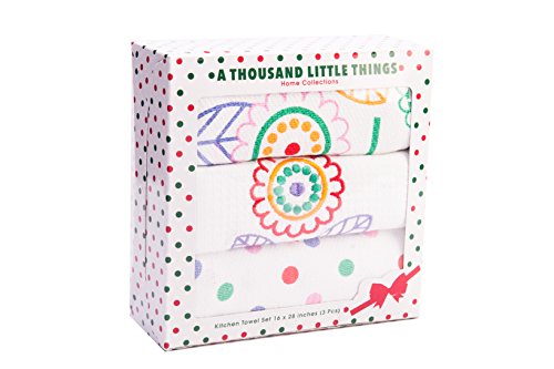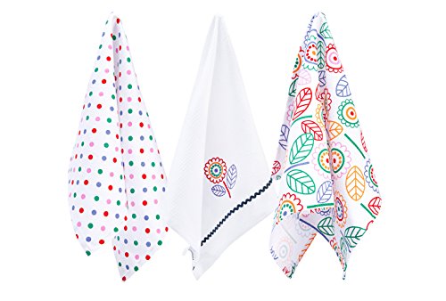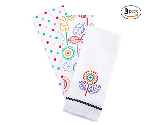 Kitchen Towels - Dish Cloth 3 Pack With Vintage Design for Kitchen Decor - Super Absorbent 100% Natural Cotton Kitchen Towels (16x28 inch) - Tea Towels Perfect Home and Kitchen Gift