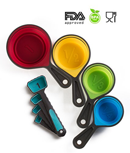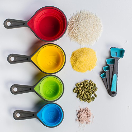 Set Of 8 Table Measuring Cups And Spoons Perfect For Delicious Cooking Or Baking Professional Measuring Dry And Liquid Ingredients Premium Food Grade Soft Silicone For Easy Grip