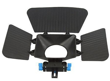 The matte box, made of removable plastics flags and black anodized aluminum tripod, has an adjustable height to fit different lens sizes and diameters from 43mm up to 82mm.It can fit 15mm standard rail diameter and can be used to block the sun or other light source so as to prevent glare and lens flare.