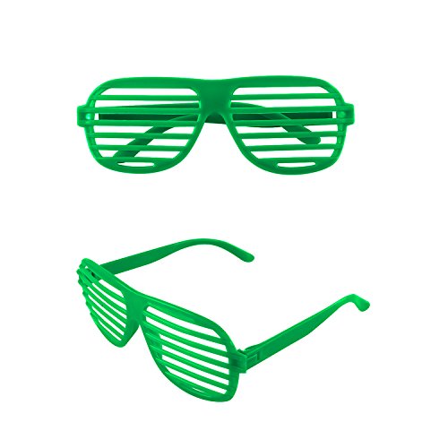 -. Feature : A fun addition to party favors, these shuttering shades come in vibrant colors. Place these in goody bags or around your party space as fun photo props that kids and adults will love to rock. Be the hit of the party with these flashy glasses. / Hip novelty glasses accessory to complete your punk rock, diva, female pop star costume! Some cut up jeans, put on some fishnet fingerless gloves and neon leggings with splatter paint that will also tie together this pop look. To complete your fashion statement, you can add some neon jelly bracelets, colorful leg warmers, scrunchy, vintage sunglasses and a disco t-shirt. / Make any event more colorful with these fun eye fashions! These funky glasses are fun accessories for concerts, beach bashes and parties of all kinds. Use these cool glasses as party favors for a fun surP.R.Ise! Shutter sun glasses are a marvelous favor idea no matter what you are celebrating. / Glasses are designed with horizontal lines so it is easy to see and made from durable plastic. These make a fun and stylish novelty toys for kids and adults. Bring back the retro 80's look with colorful shutter style novelty sunglasses that help style your wardrobe around this fun aesthetic! / Each pieces measures at 6" in length. Packaged in a set of 12 shutter shade sunglasses.