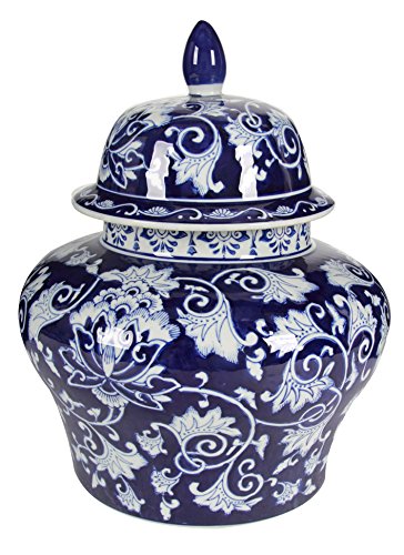 A&B Home Covered Ginger Jar, 14 by 17-Inch, Blue/White