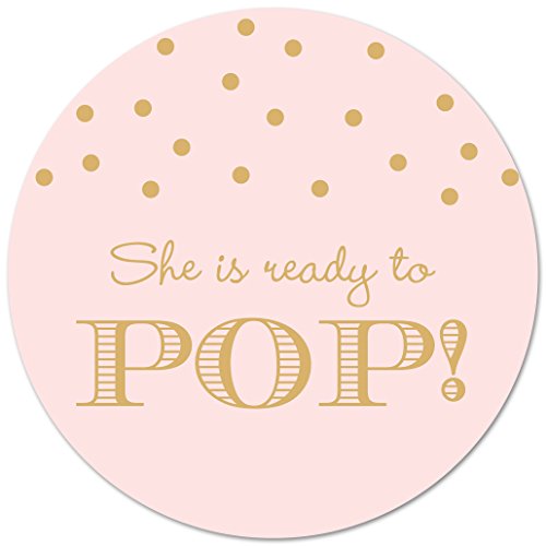 - This cute round sticker features gold dots and she's ready to POP! text on a pink background.