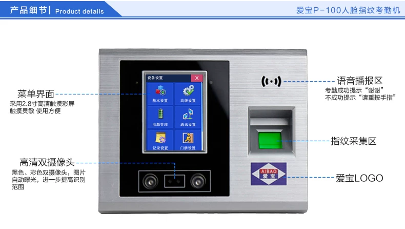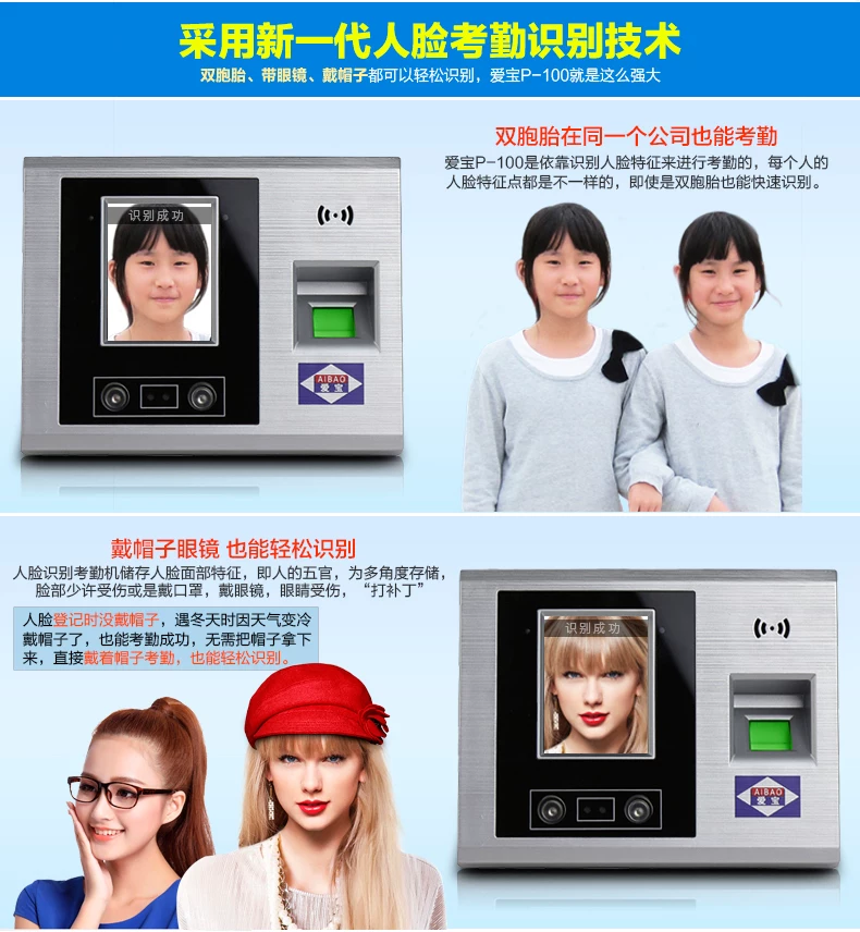 Aibo P-100 Face attendance fingerprint attendance punch card machine to send facial recognition mobile power