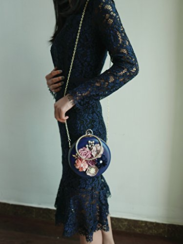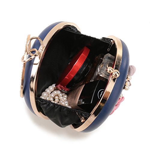 Product Description The glamorous evening party clutch features allover sparkling crystals on the front of this chic shaped clutch and has metal frame construction with clasp on the top. It features magnetic hasp closure and detachable chain which offers versatile carrying options as handbag, clutch, a shoulder bag or a cross-body bag. The crystal handbag is so royal, noble and brilliant that it will be a perfect status symbol and a bold gift for femininity.