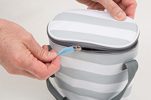 The graphite grey stripe pattern with the distinctive Bula Baby blue tabs makes it a fashionable option for both parents when out and about. Add to cart and grab your Bula Baby On the Go cooler bag today.