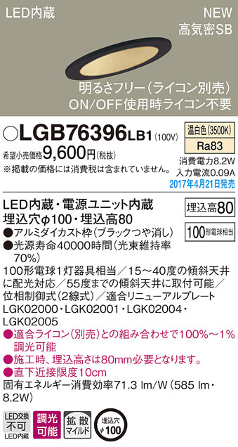 ●寸法(mm):埋込穴φ100・埋込高80