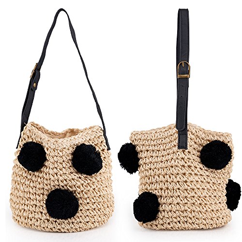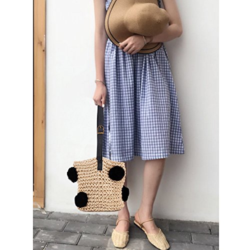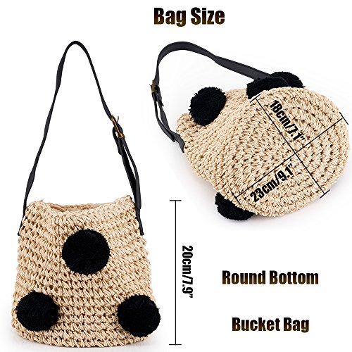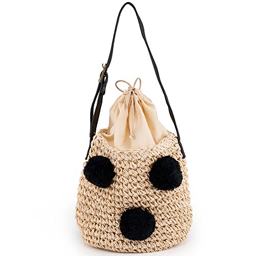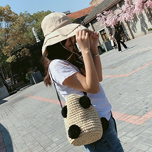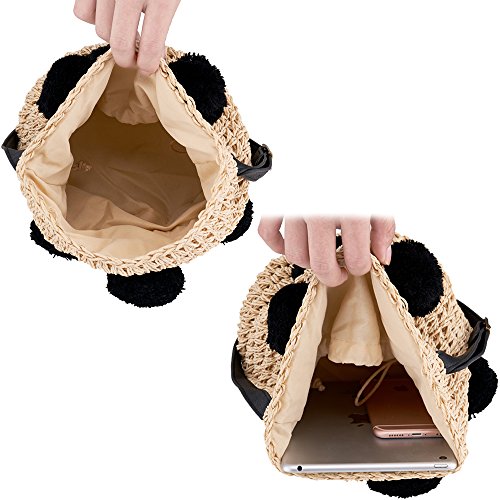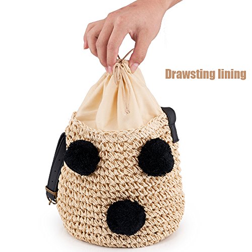 Cute Handmade Straw Woven Handbag Summer Beach Drawstring Shoulder Bags