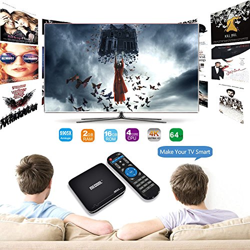 -. Feature : The latest powerful chipset Amlogic S905X 64 bit Octa core ARM Cortex-A53 CPU up to 2 GHz Ultra high frequency, provides you with ultra-fast running speed and professional graphic processing ability. / The latest Version Android 7.1 OS,1the newest generation of android tv box. Users can download, install or uninstall hundreds of free software, games and application programs easily and conveniently. It is built for office work, entertainment, home theater, business meeting, etc. / It Supports decoding and playing almost all popular audio and video formats, bringing you to enjoy 4K ultimate HD video. you can find many useful add-ons for your TV boxes.Supports 2GB DDR4 RAM 16GB eMMC ROM gives you more space to enjoy your entertainment.no buffering problem when you use it. gives you space and freedom to install apps without worrying the less room for apps anymore. / Based on H.265 HD decoding, it offers 4k * 2k output with 100Mbps cable network which provides you high definition viewing and fluent video playing. / Bandwidth saving Lifting speed: H.265 hardware decoding can save 50% bandwidth resources, let you watch the 4K movie smoothly. 4K 1080i/P resolution is 4 times of full HD, so every detail of the screen is lucidity.
