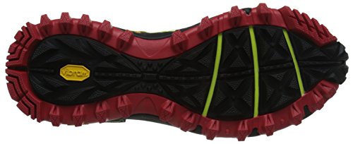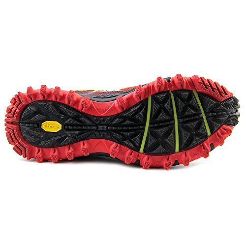 -. Feature : Red trail running shoe, cushoned with water proof upper / Gore tex