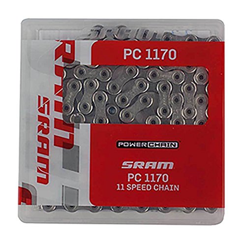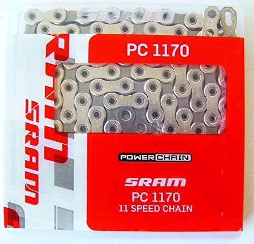 Studio : SRAM Publisher : SRAM Product Description Yeah, SRAM has made Nigel Tufnel jokes pretty easy with its whole 11-speed thing, but that's a small price to pay for improved shifting and better gear ratios. The fanciest cassette in the world won't work right without the correct chain, though, so SRAM modified its PC-1070 chain, renamed in the PC-1170, and served it up to all the 11-speeders out there. The PC-1170 is slightly narrower than its forebear, to comply with the smaller tolerances required by an 11-speed cassette. It also has hollow pins, which save 20g of weight without decreasing strength, and has new inner and outer finishes for improved smoothness. Of course, it also comes with SRAM's legendary PowerLink, which makes chain removal and drivetrain cleaning as easy as pie. The PC-1170 also ships with a pre-applied coating of SRAM's PowerLube, so it's ready to ride straight out of the box. 0