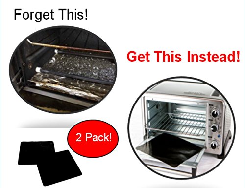 TWO-PACK 100% Non-Stick 11 Toaster Oven Liner. Finally, Prevent Spillovers, Gunk & Odors! Great Tef