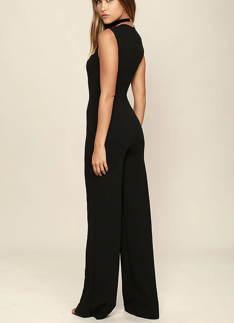 mono elegante de mujer largo:halter neck work formal Long Romper