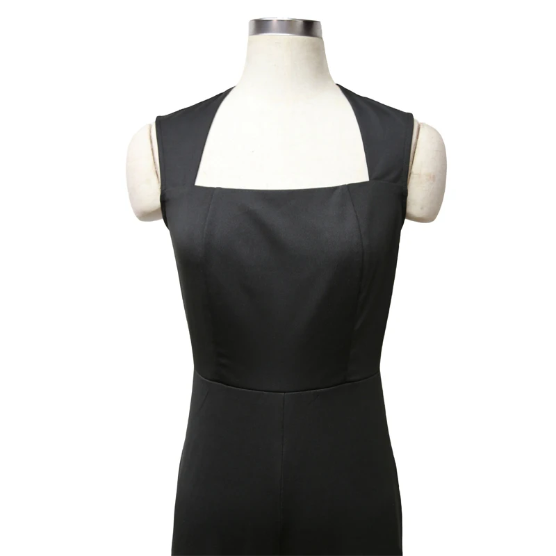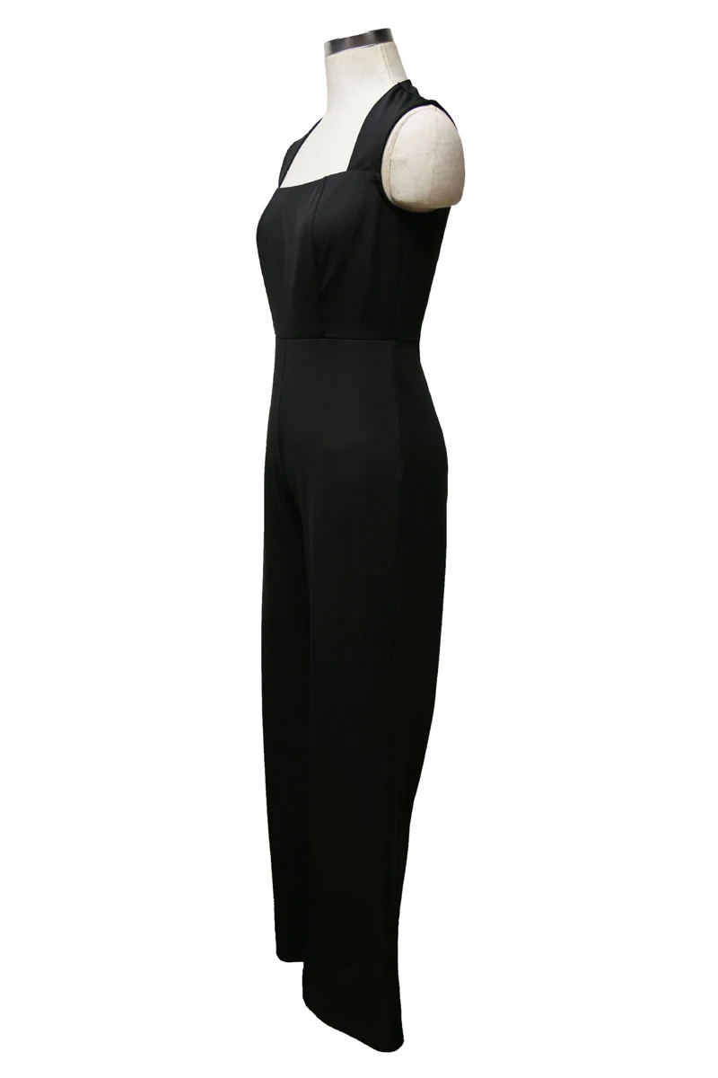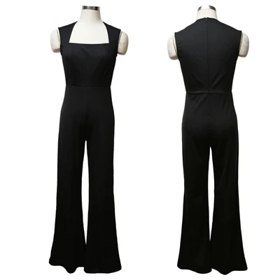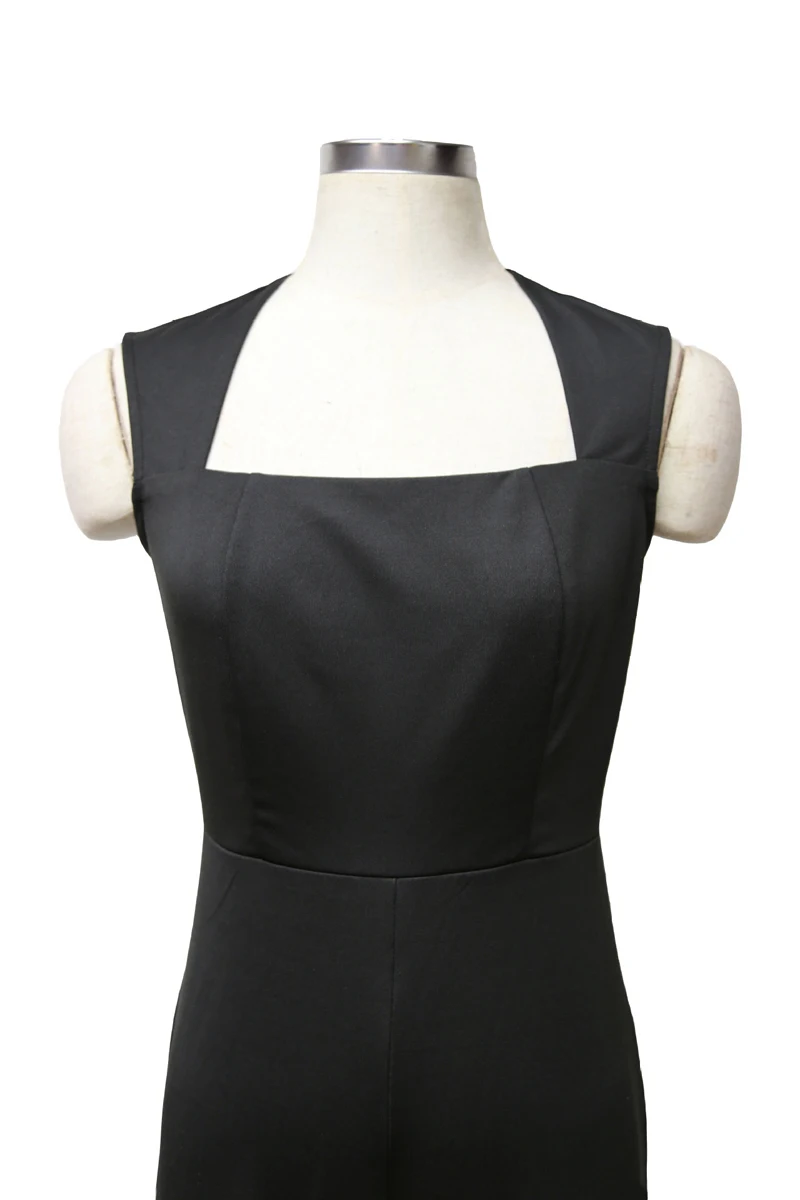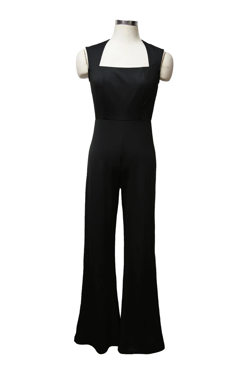 jumpsuit long black:Square Neck Full Length Playsuit,ruffles Fold jumpsuit