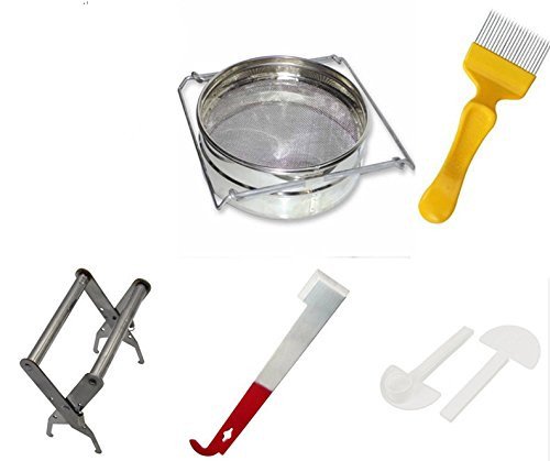 Stainless Steel Beekeeping Double Honey Filter Strainer Apiary Equipment&Bee Brush& J Hook Hive Tool Set Equipment