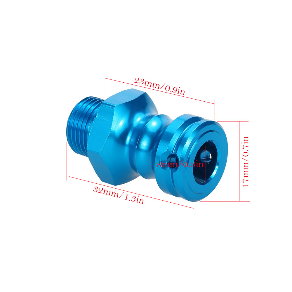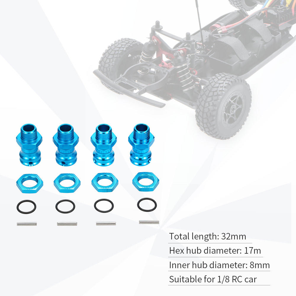 This extension adapter is made of high quality material and durable in use, and it is upgrade part with good performance, aluminum alloy machined wheel nut with integrated O-ring to prevent nut from backing off, which is suitable for 1/8 RC car. It sure be a best choice for RC fans.