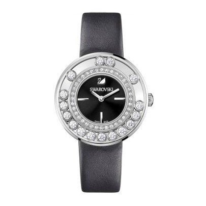 -. Title : Swarovski Lovely Crystals Black Dial Anthracite Calfskin Leather Strap Quartz Ladies Watch 1160306