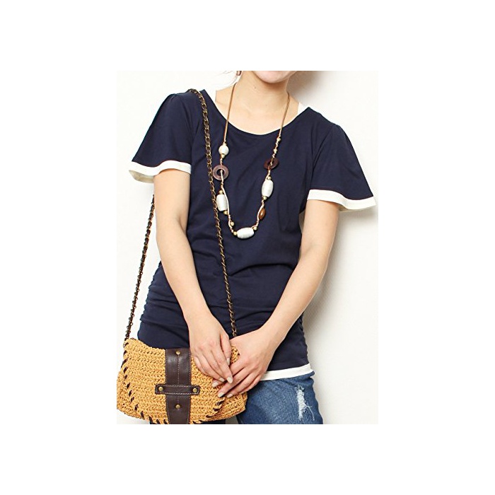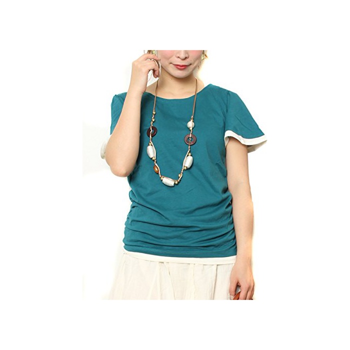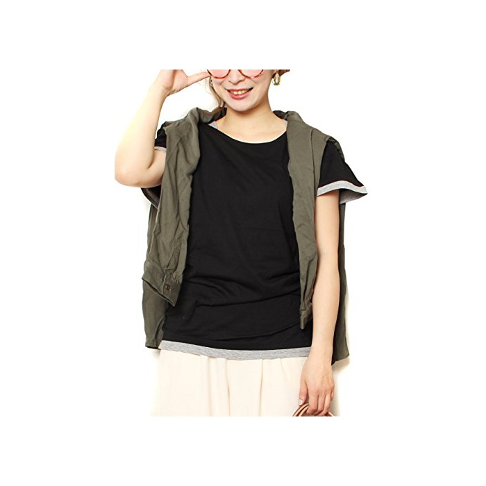 원본상품명: (Goldjapan)ゴルドジャパン 大きいサイズ レディス ストレッチ レイヤド フレアスリブ 丸首 サイドシャリング入り バイカラ Tシャツ Uネック 半袖 カットソ 型カバ w