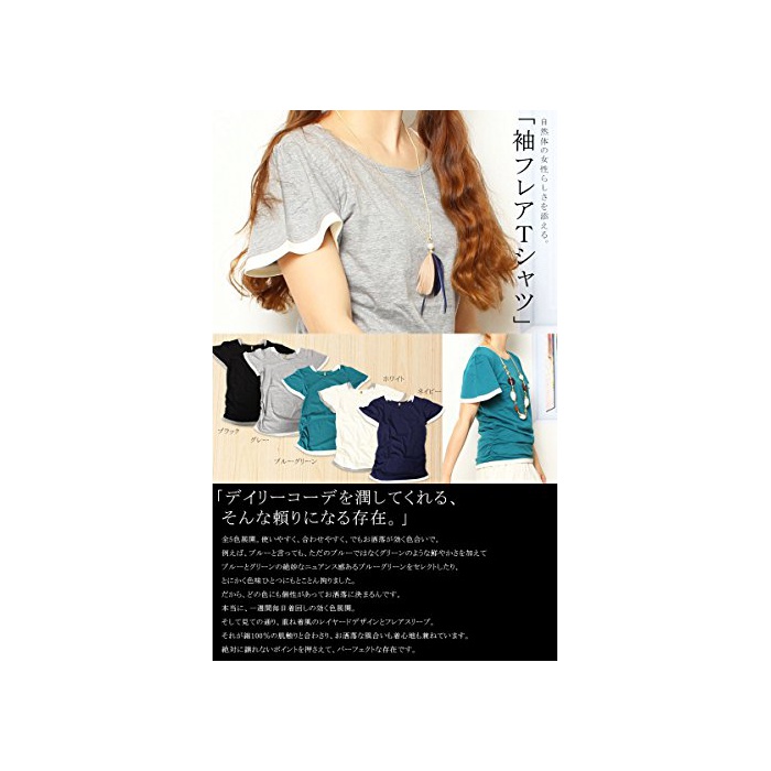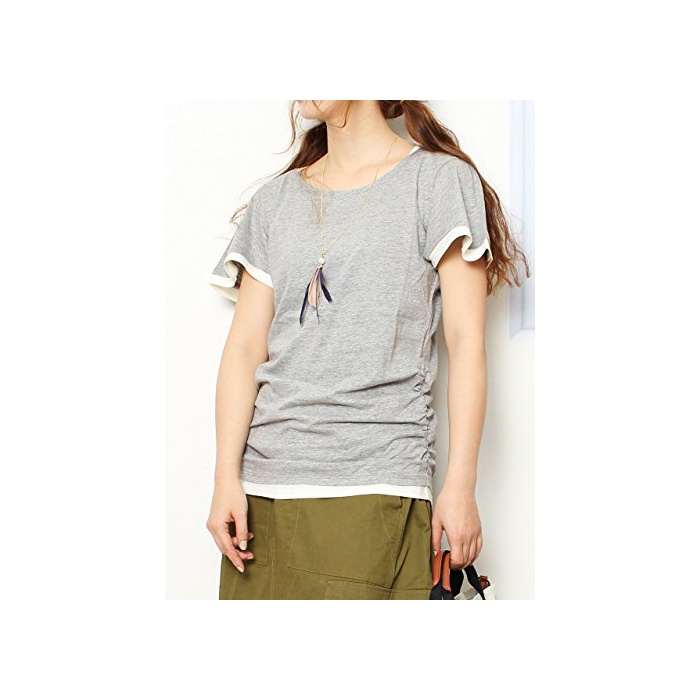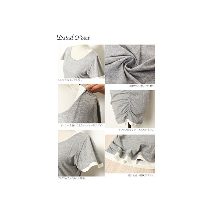 (Goldjapan)골드 재팬 큰 사이즈 레이디스 스트레치 레이어드 플레어 슬리브 둥근 목 모양 싸이드 셔링 들어감 바이 컬러 T셔츠 U넥 반소매 컷소우 체형 커버 wk-0037