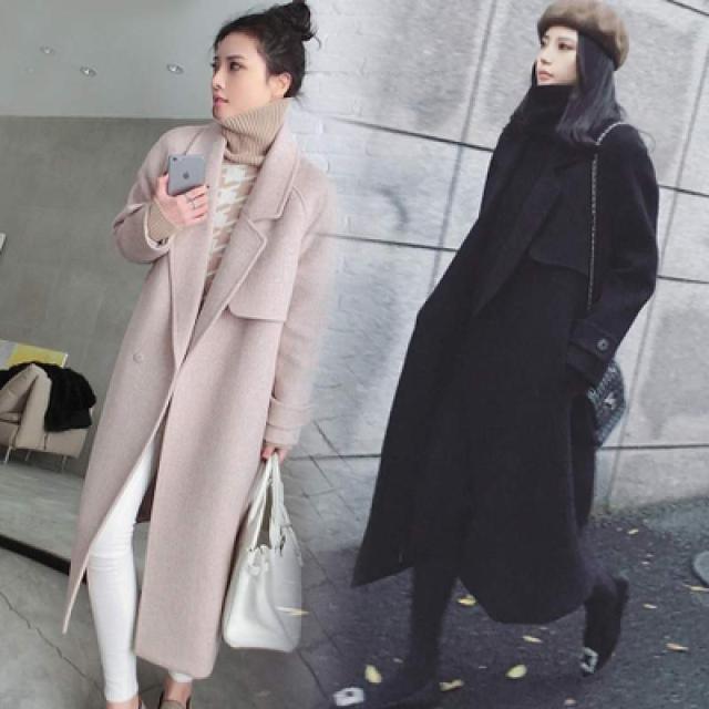トレンド シンプル ロング丈 ウール混 ウエストベルト スタイリッシュ コート 秋冬 上品 S M L XL