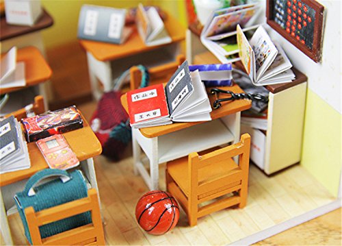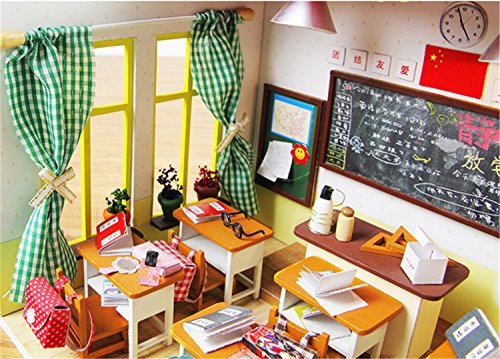 -. Title : DIY LED Wooden Dollhouse Miniatures Kit School Classroom Doll House 3D Model DIY Room Gift Toy