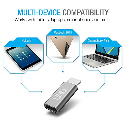 Type C Adapter, UNU USB-C to Micro USB Aluminum Adapter (USB-C to Micro USB) Convert Connector for LG G5, Nexus 5X, Nexus 6P, OnePlus 2, Other Type-C Devices ,Meet USB Type-C Standard (2-Pack, Grey)