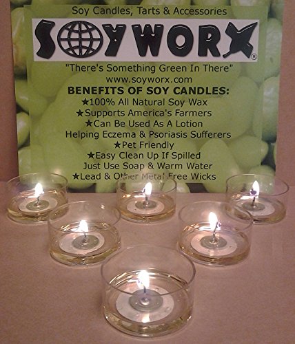-. Feature : Unscented Soyworx Soy Tealight Candles Each candle measures approx. 1.5" across 3/4" tall! / Polycarbonate Clear Cups 100% Recyclable / Burn on Average 7 hours! Range is 6 1/2 to 10 Hours! / All Natural, Vegan, Kosher Soy Wax! All Natural Color! / 100% METAL FREE WICKS