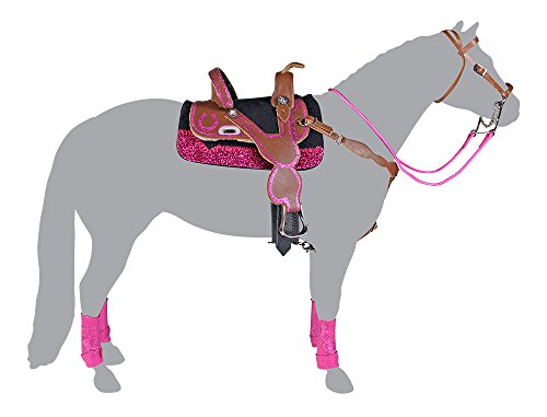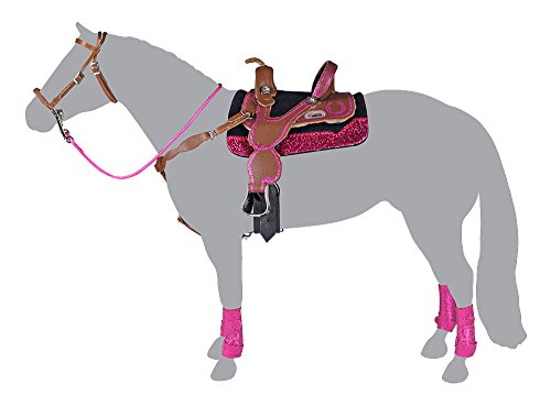 Saddle up for a championship run with this colorful barrel racing set! Includes saddle, saddle pad, bridle, breast collar and 4 sport boots. Authentically-styled, this set features bright color and sparkles - just like real barrel racing tack! Add your favorite Breyer Traditional horse and rider, and you're ready to race! Made to fit Breyer Traditional (1:9 scale) horses.Feature