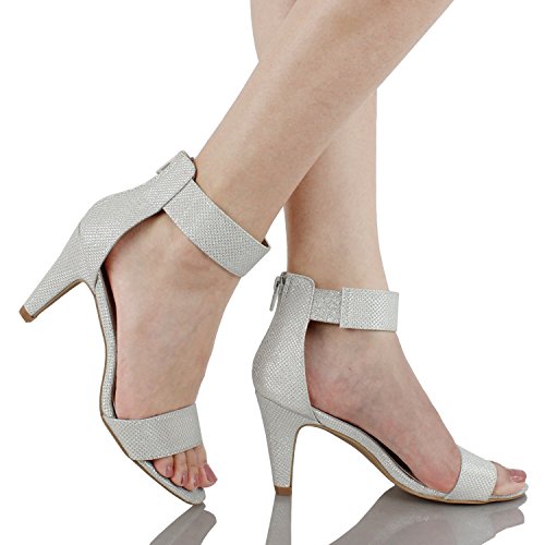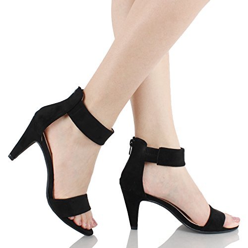 | Womens Classic Comfort Sexy Open Toe Mid Heel Ankle Strap Dress Stiletto Heeled-Sandals |