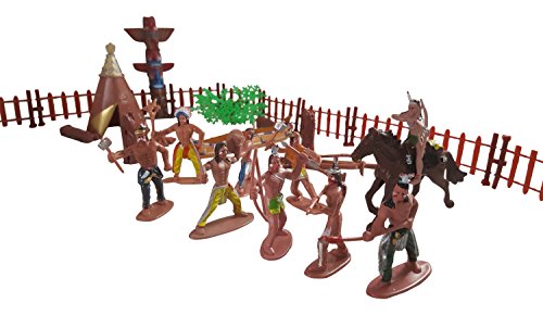 Studio : Liberty Imports Publisher : Liberty Imports Binding : Toy Product Description Wild West Cowboys and Native American Indians Figures and Accessories 55 Piece Bucket Playset. Includes a variety of Hand Painted Detailed Plastic Figures, each measuring 2.5 inches tall. Playset includes other accessories such as Horses, Wagons, Tee-pee, Canoe, Fences, Trees, Totem Pole, and More! Ages 3 and Up. 0