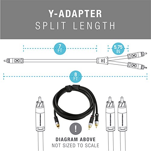 Studio : Mediabridge Products, LLC. Publisher : Mediabridge Products, LLC. Binding : Electronics Product Description MediabridgeTM ULTRA Series RCA Y-Adapter - 1-Male to 2-Male Connects a TV, CD/DVD player or other RCA-enabled device to the left right audio ports of a subwoofer or amplifier. The Y-adapter has 1-Male to 2-Male RCA connectors, which splits audio components for a genuine surround sound experience (no extra cables needed). The low-loss, wide spectrum coaxial cable is the ideal medium for low-frequency signals produced by subwoofers, providing deep precise sound quality. Dual-shielded with braided copper shielding, aluminum Mylar shielding gas injected foam dielectric, for natural sounds rejection of hum/static that occurs when devices are placed near each other. Split-tip center pins ensure high contact pressure conductivity. Uniquely gripped color-coded molds corrosion-resistant gold-plated connectors have tighter fits than commonly rolled cables with wider tolerances. ULTRA Series cables are made from heavy-duty materials for a pro-grade output. Finished in a durable, yet pliable PVC jacket for easy installs. Product Features - Connects RCA-enabled devices to the left right audio ports of a subwoofer speaker or amplifier - 1-Male to 2-Male RCA connectors, which acts as a splitter for audio components (no extra cables needed) - Dual-shielded coaxial cable with braided copper shielding, aluminum Mylar shielding gas injected foam dielectric - Low energy loss RF/EM rejection - Corrosion-resistant gold-plated connectors with split-tip center pins - Tough, yet flexible PVC jacket Compatibility Devices with RCA ports, like a TV, CD/DVD player, subwoofer amplifier Installation Plug--play: The cable is ready to use, once each end is connected to its respective port on a compatible unit. 0