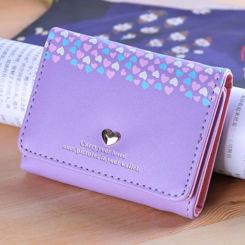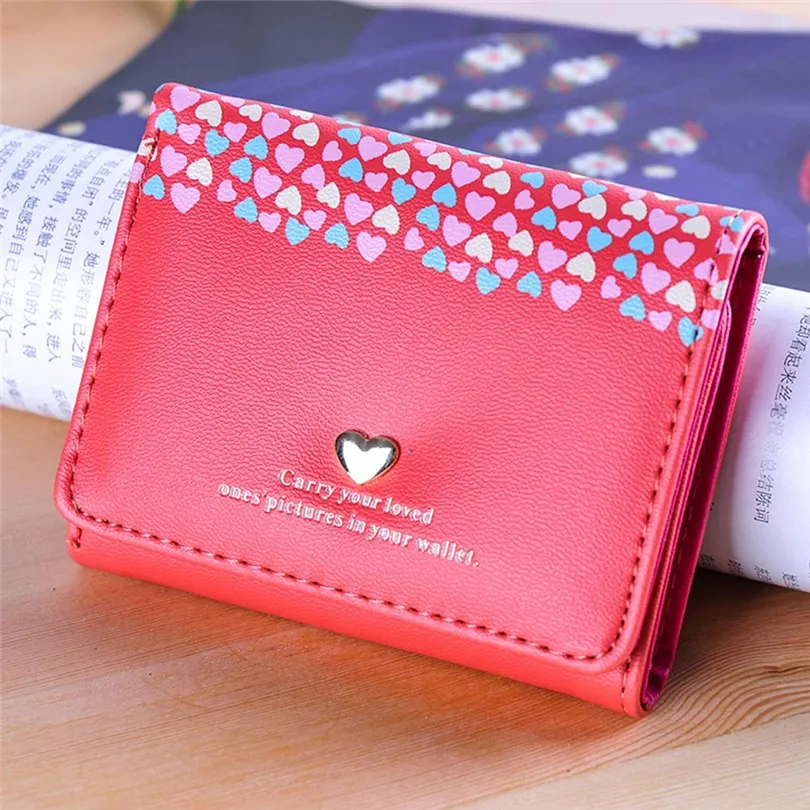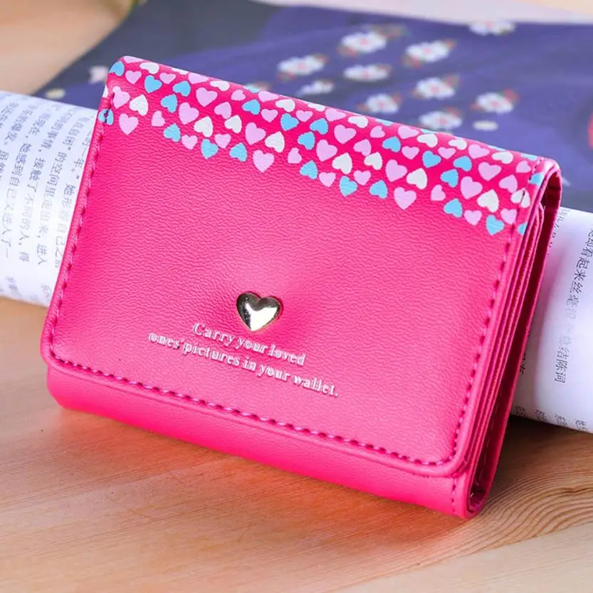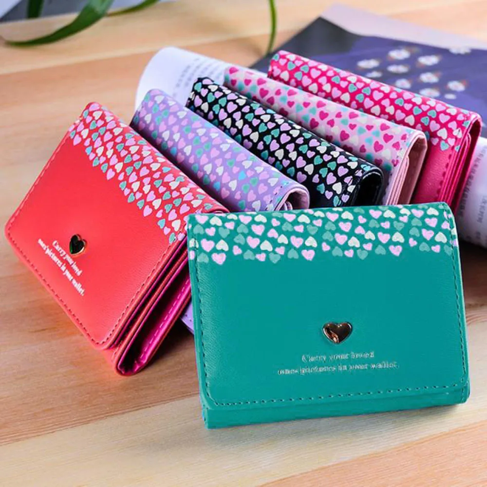 Model Number:Women Love Heart Coin Purse Short Wallet Card Holders Handbag