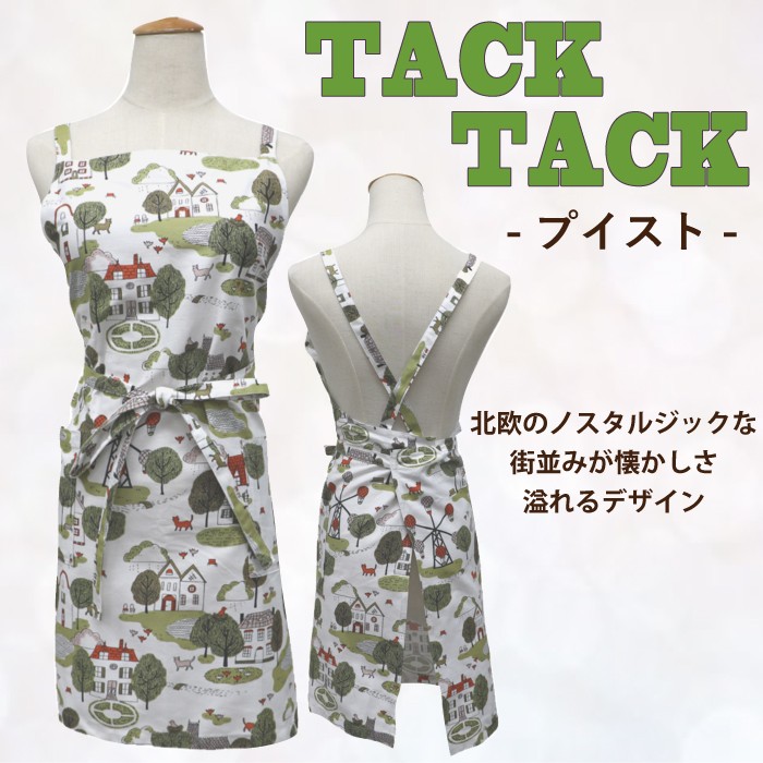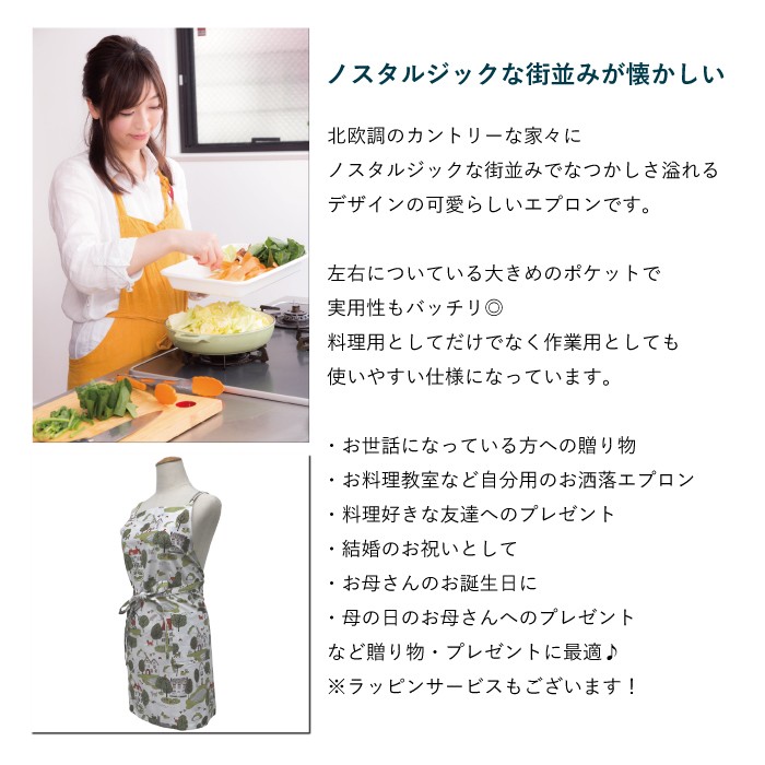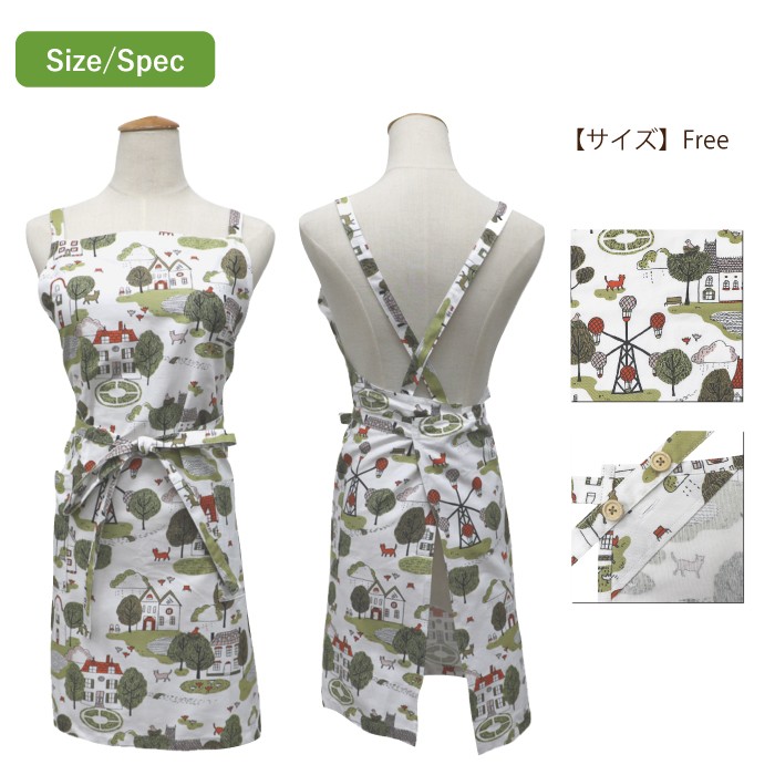 ノスタルジックな街並みが懐かしい カントリー調のおしゃれなエプロンです。 ■サイズ フリー 着丈(胸元のレースから裾まで) : 約71cm  ウエスト : 約84cm 腰紐(片側): 約90cm ■材 質 綿100%