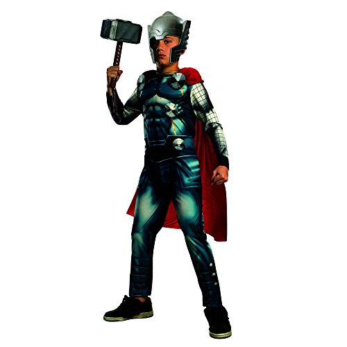 -. Brand : Rubie's -. ClothingSize : size small (4-6), medium (8-10), and large (12-14) -. Color : Grey -. Department : boys -. Feature : Brand new authentic licensed Marvel Standard Thor costume / Child Size size small (4-6), medium (8-10), and large (12-14), approx ages 3-10. All measurements provided by Rubies and are approximate. If in doubt please purchase larger size and children will grow into it. / This posting includes: Thor jumpsuit and mask as featured / Please note that only the items listed above are included -. Label : Rubies Costume Co -. Manufacturer : Rubies Costume Co -. MPN : RC620020 -. NumberOfItems : 1 -. PackageQuantity : 1 -. PartNumber : RC620020 -. ProductGroup : Apparel -. ProductTypeName : APPAREL -. Publisher : Rubies Costume Co -. Size : size small (4-6), medium (8-10), and large (12-14) -. Studio : Rubies Costume Co -. Title : Child's Boys Marvel Avengers Assemble Thor Costume