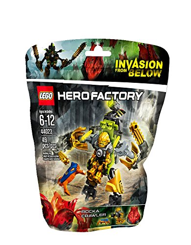 -. Binding : Toy -. Brand : L.E.G.O -. Department : baby-boys -. EAN : 0673419207157 -. Feature : Includes ROCKA mini robot with a weapon, Also includes a cocoon and a jumper and a click shooter for ROCKA / Features detachable seat, huge adjustable machine arms, chainsaw hands, possible joints plus gold and translucent elements / Flip out the sides of the cocoon to hatch a jumper! Make the jumper leap with a flick of your finger! Fire the click shooter to repel the jumper! / Combine with 44026 BULK Drill Machine and 44027 BREEZ Flea Machine for an even bigger hero model / Stands over 5" (13cm) tall -. Genre : strategy -. IsAdultProduct : 0 -. ItemPartNumber : 6058924 -. Label : L.E.G.O -. LegalDisclaimer : WARNING! CHOKING HAZARD -small parts.Not for children under 3 years old.This is not a toy. Adult supervision required. Unsuitable for anyone under age of 6. Please keep it away from children. -. Manufacturer : L.E.G.O -. Model : 6058924 -. MPN : 6058924 -. PackageQuantity : 1 -. PartNumber : 6058924 -. ProductGroup : Toy -. ProductTypeName : TOYS_AND_GAMES -. Publisher : L.E.G.O -. ReleaseDate : 2014-08-01 -. Studio : L.E.G.O -. Title : L.E.G.O Hero Factory 44023 ROCKA Crawler Model Kit -. UPC : 673419207157 -. Warranty : No Warranty