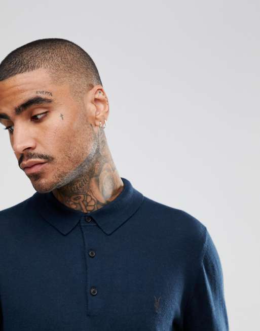 AllSaints Knitted Polo Shirt In 100% Merino Wool