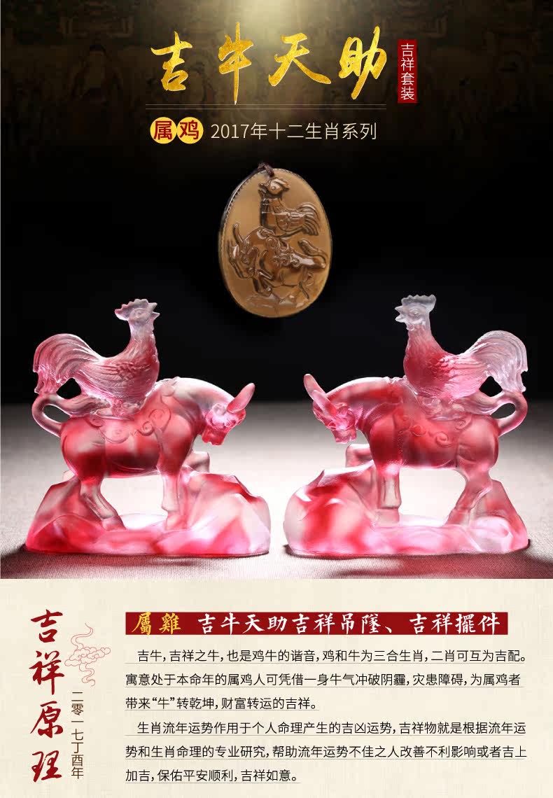 开光属鸡本命年吉祥物吉牛天助吊坠属鸡2017年吉祥物吉牛天助摆件