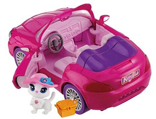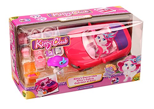 Welcome to Kitty Heart Lane – where every resident is a cool cat! Kitty Club is all about fashion, best friends and having a good time. There are 21 different Kitty Club members to collect, each has a unique hat and story. Drive around Kitty Heart Lane in style with the Kitty Club Convertible with Accessories! This cool car has working wheels, doors and trunk and a fuzzy flocked interior for maximum kitty comfort. Includes a kitty, a fashion hat, convertible car with accessory, collector card and a Kitty Club brochure. Dimensions of car are: 5" x 5.5" x 7.5", for ages 3 and up.Feature